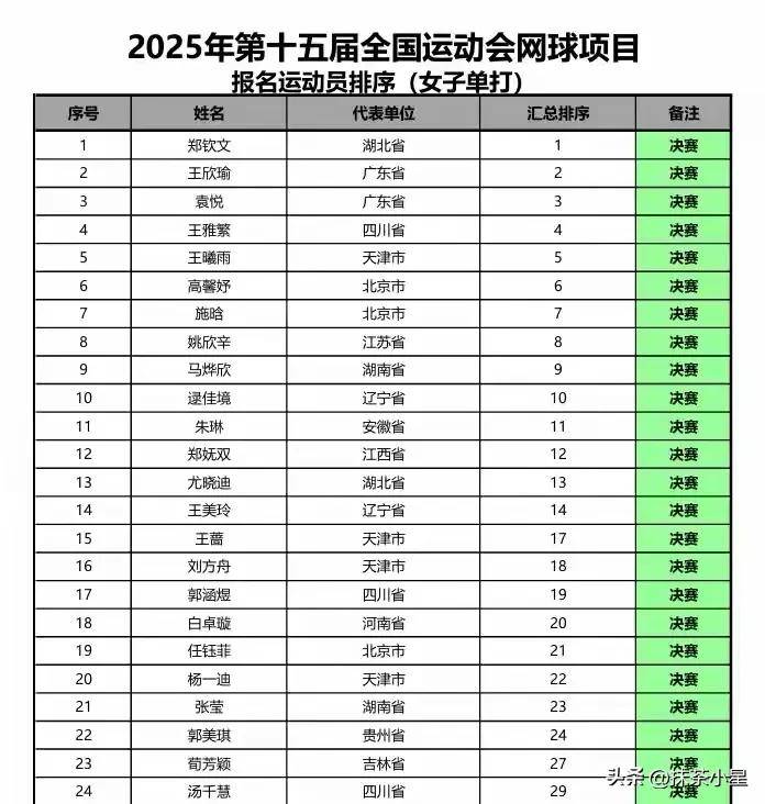 郑钦文退赛的同时,张帅未能赶上报名的最后时机,因此本次全运会女单冠军的争夺呈现出较大的不确定性。虽然王欣瑜是目前唯一一位排名仍在TOP100以内的中国女球员,但她在与其他选手的交锋中并未展现出压倒性的优势。