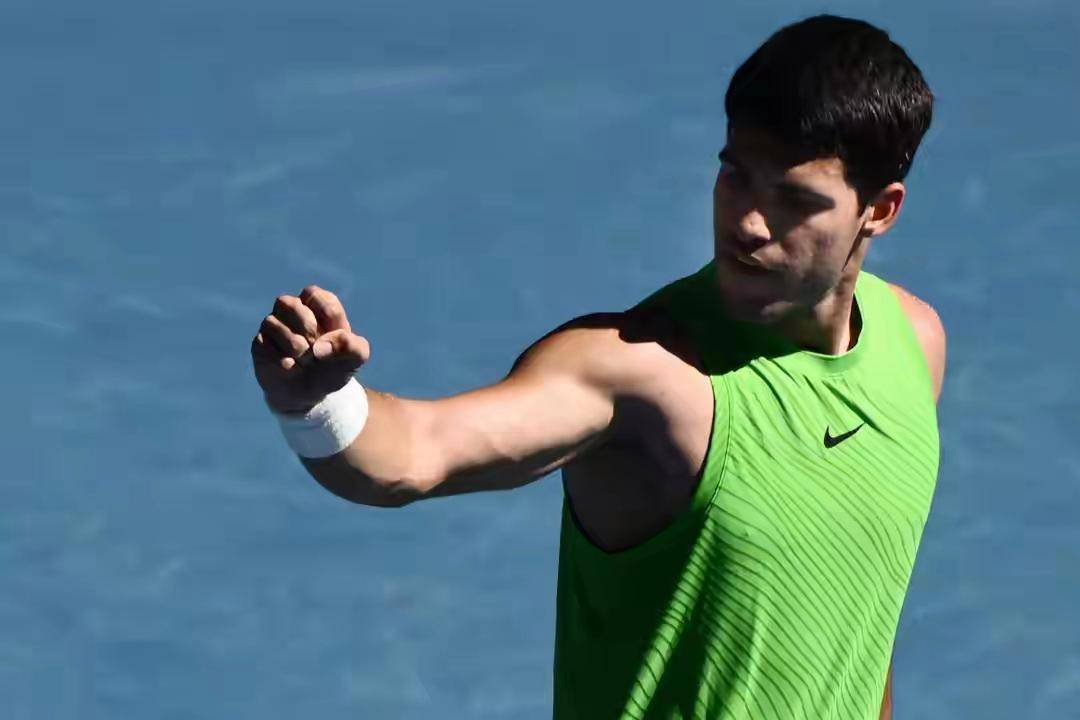 头号种子阿尔卡拉斯跟德国一哥兹维列夫拼了足足5个小时27分钟,创下了澳网历史上最长半决赛的纪录,最后逆转取胜,第一次杀进澳网男单决赛。