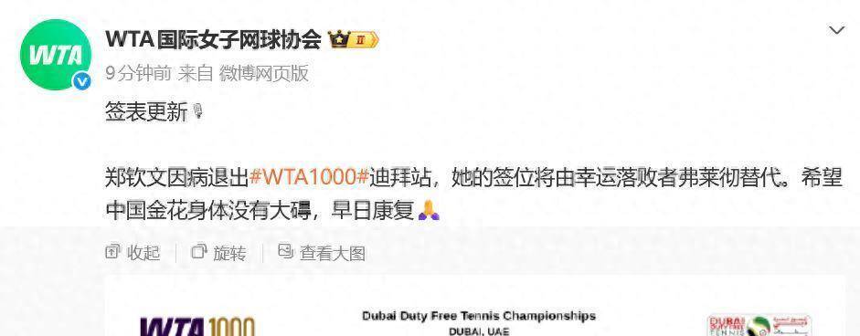 美网,美国网球公开赛,US Open,美网2025,美网直播,美网签表,美网投注,网球四大满贯/【2025美网】美国网球公开赛US Open最新赛程签表、比分直播、球员动态、冠军预测全掌握!关注美网四大满贯盛事,获取最新赔率与投注资讯。就在原定开赛时间前大约两小时,WTA国际女子网球协会的官方账号突然发布了一则简短的消息。 这则消息让无数守在屏幕前等待比赛开始的中国球迷瞬间愣住了。 消息的核心内容只有一句:中国球员郑钦文因病退出WTA1000迪拜站的比赛。 她的签位将由幸运落败者劳伦·弗莱彻替代。 希望中国金花身体没有大碍,早日康复。 没有冗长的解释,没有复杂的病情说明,只有“因病”两个字。 这个突如其来的官宣,彻底打乱了迪拜站女单首轮的对阵表。 郑钦文原本应该在北京时间2026年2月15日下午出场,她的对手是美国球员佩顿·斯特恩斯。 这是一场被许多网球媒体标注为“恩怨局”或“复仇之战”的比赛。 如今,这场对决还没开始就已经结束。