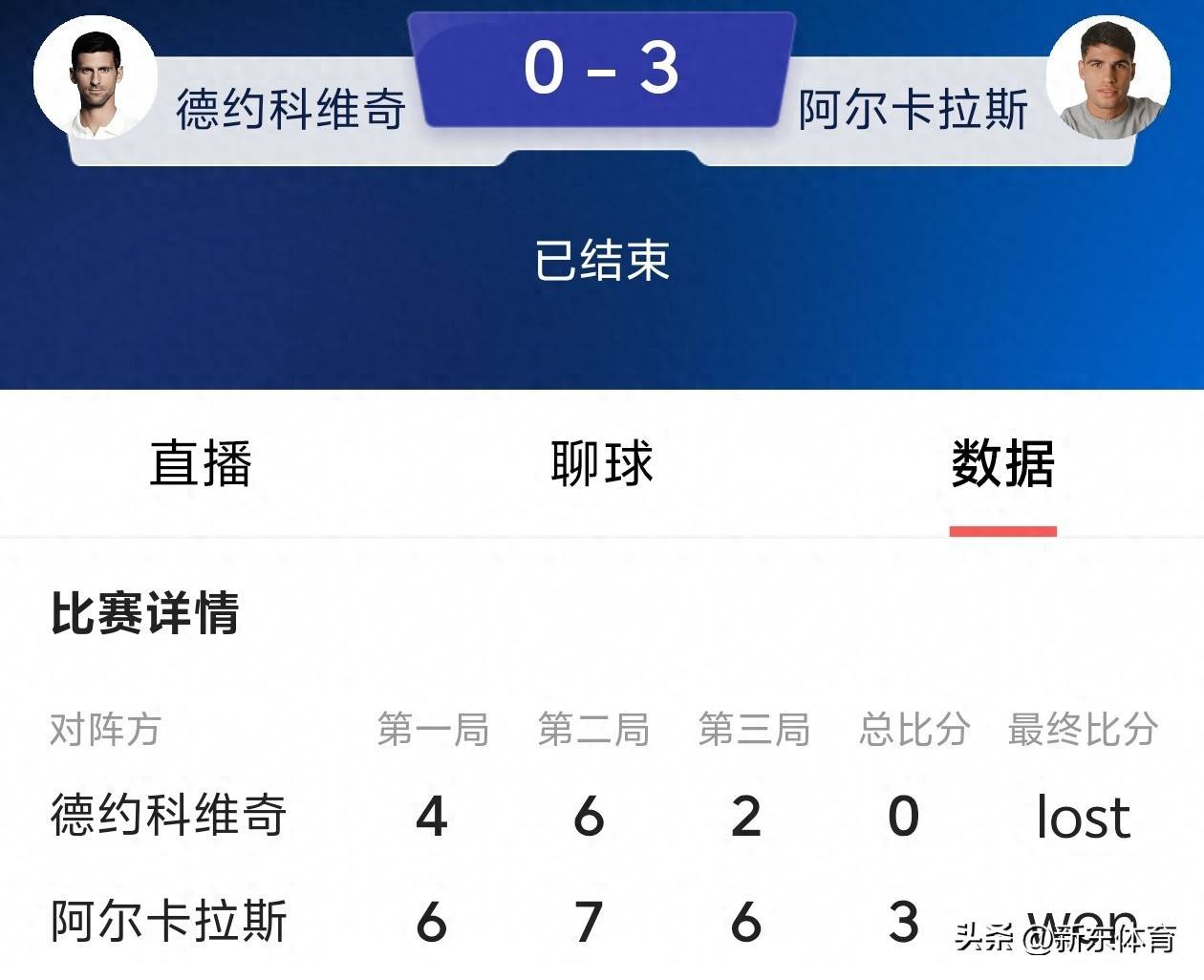 这场失利意味着德约科维奇连续第三次在大满贯赛场被新生代选手直落三盘淘汰。赛后技术分析指出,德约科维奇在接发球环节的表现尤其失常,二发得分率仅有41%。而获胜的阿尔卡拉斯则延续了本赛季的强势表现,在美网前六场比赛未失一盘,成为继2004年费德勒后首位达成此成就的选手。